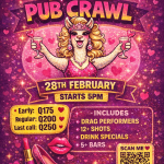 Únete a nosotros durante 6 horas de locura y recuerdos inolvidables en el famoso Pub Crawl de Mr. Mullets. Este sabado, a partir de las 17:00, sumérgete en el corazón de la vibrante vida nocturna de San Pedro y descubre los mejores bares del pueblo con un espectacular show drag.