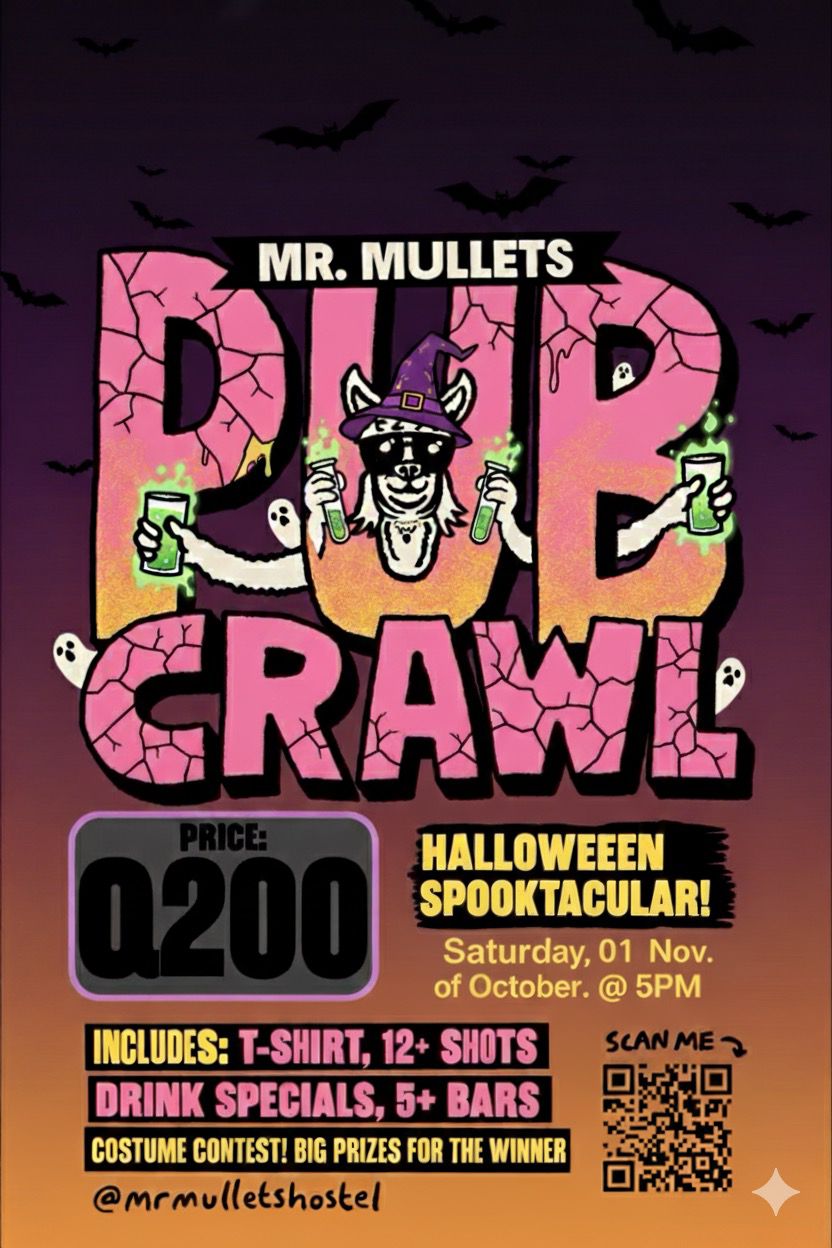 No te pierdas la diversión t síguenos en Instagram @mrmulletshostel para ver adelantos y actualizaciones de los últimos eventos del Pub Crawl.